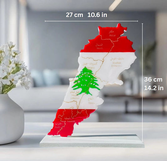 Lebanon Map, Flag Colours, Engraved Governorates - Resin Finish | Perfect Gift