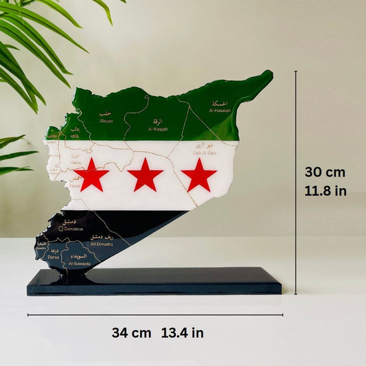 Syria Map, Free Syria Flag Colours, Engraved Provinces - Resin Finish | Perfect Gift