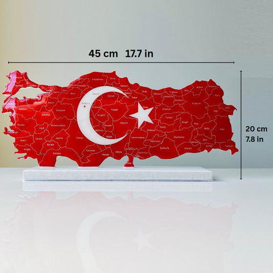 Türkiye Map, Flag Colours, Engraved Provinces - Resin Finish | Perfect Gift