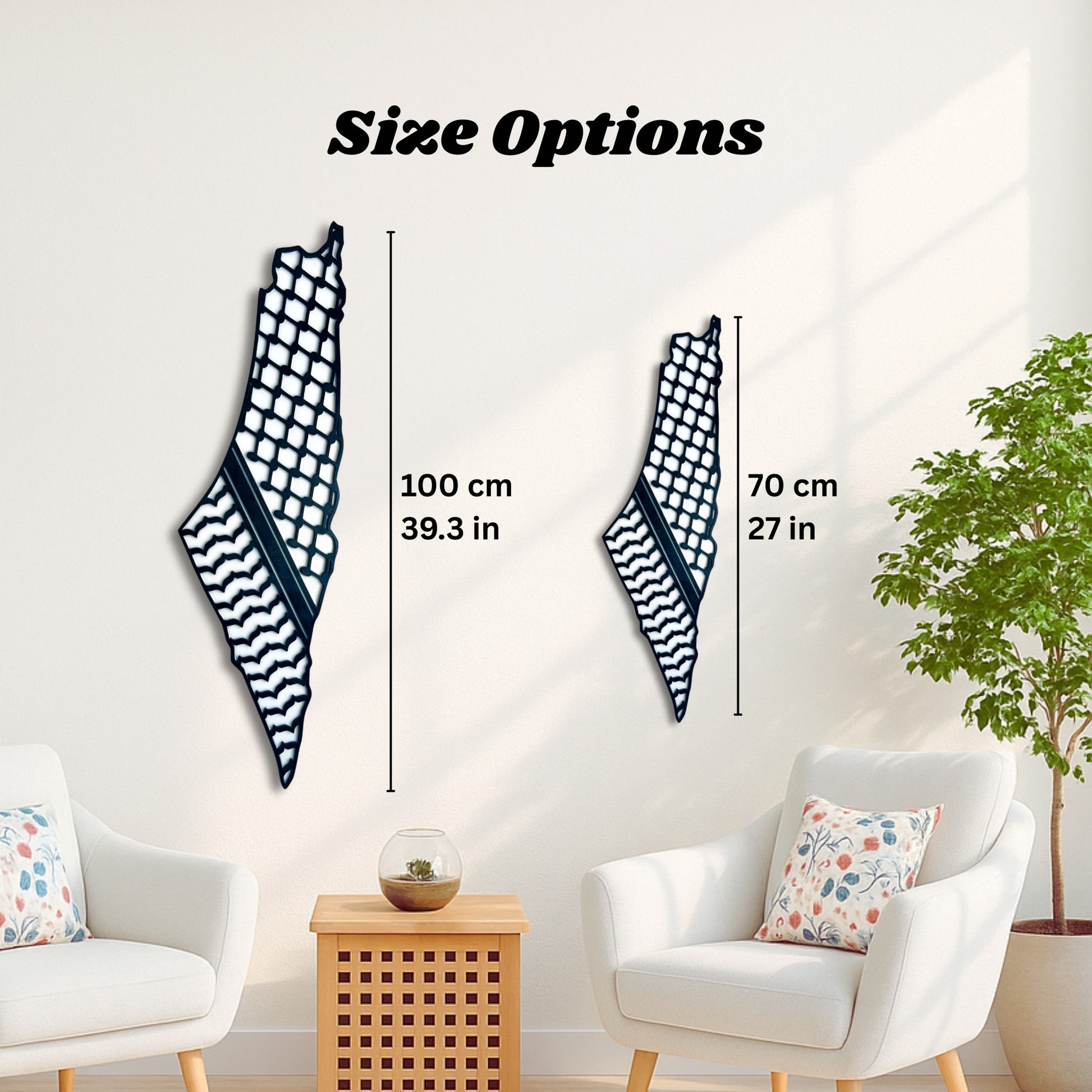 Celebrate the rich heritage and culture of Palestine with this exquisite handcrafted Palestine Wooden Map. Featuring the iconic Palestinian black keffiyeh pattern against a striking white glossy resin background, this wall art piece is a true testament to artistry and cultural pride.
